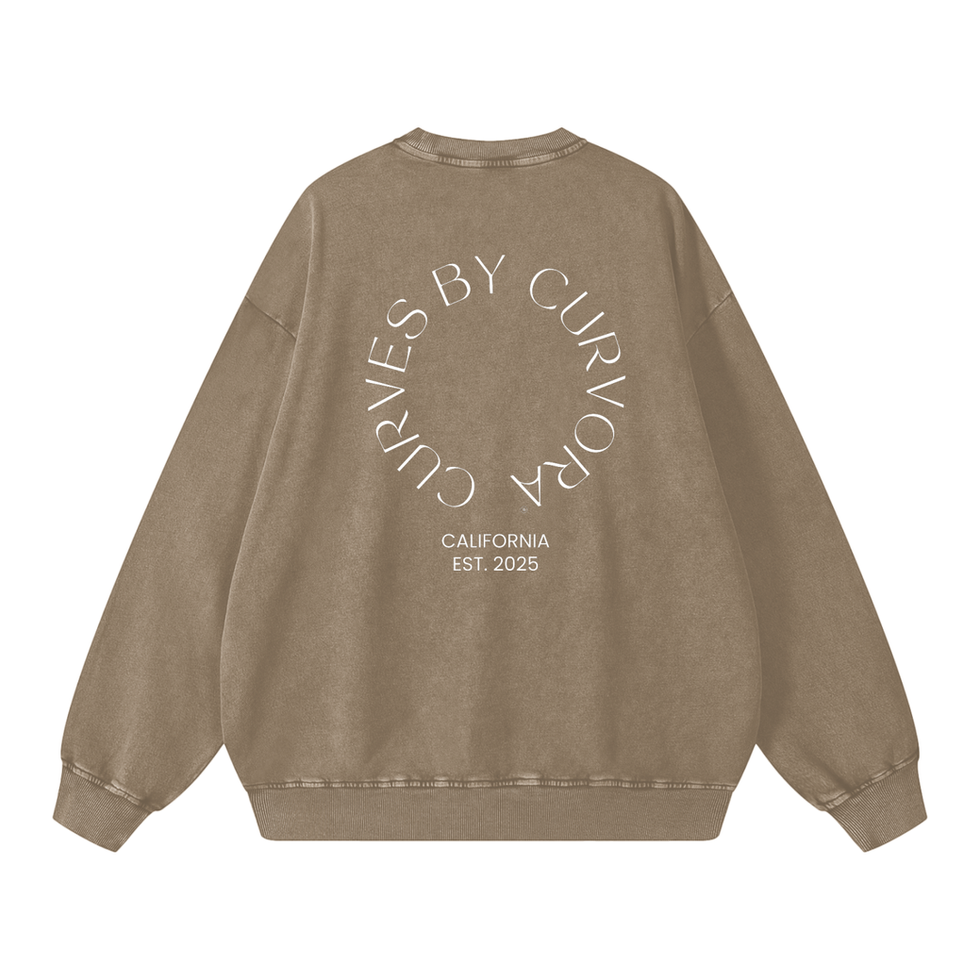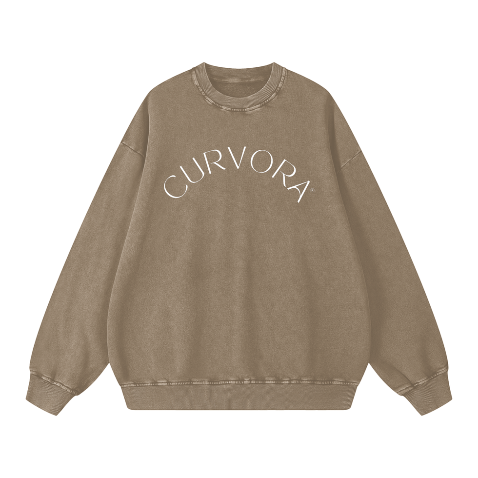 An oversized acid-wash sweatshirt designed for effortless comfort and modern Curvora® style. Featuring the signature Curvora logo, this piece pairs a relaxed silhouette with a vintage-inspired wash for a refined, studio-to-street look. Perfect for layering over your methodwear, traveling, or creating an elevated off-duty aesthetic. Soft, minimalist, and intentionally crafted, an everyday essential for anyone living the Curvora lifestyle.